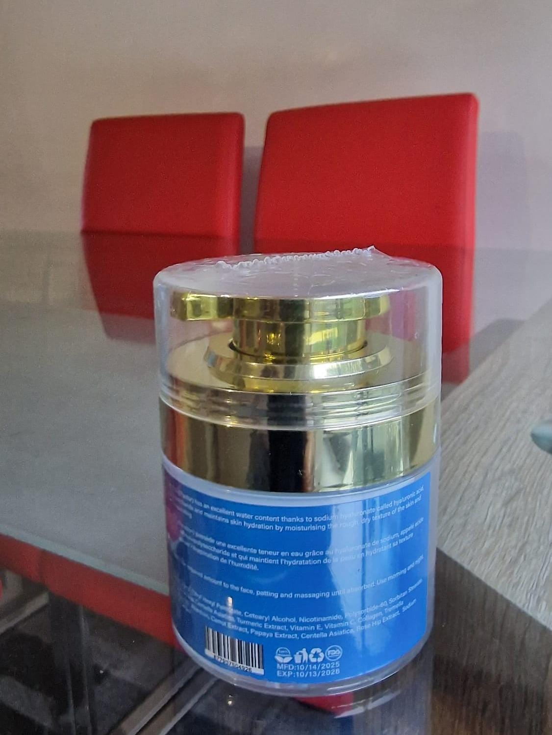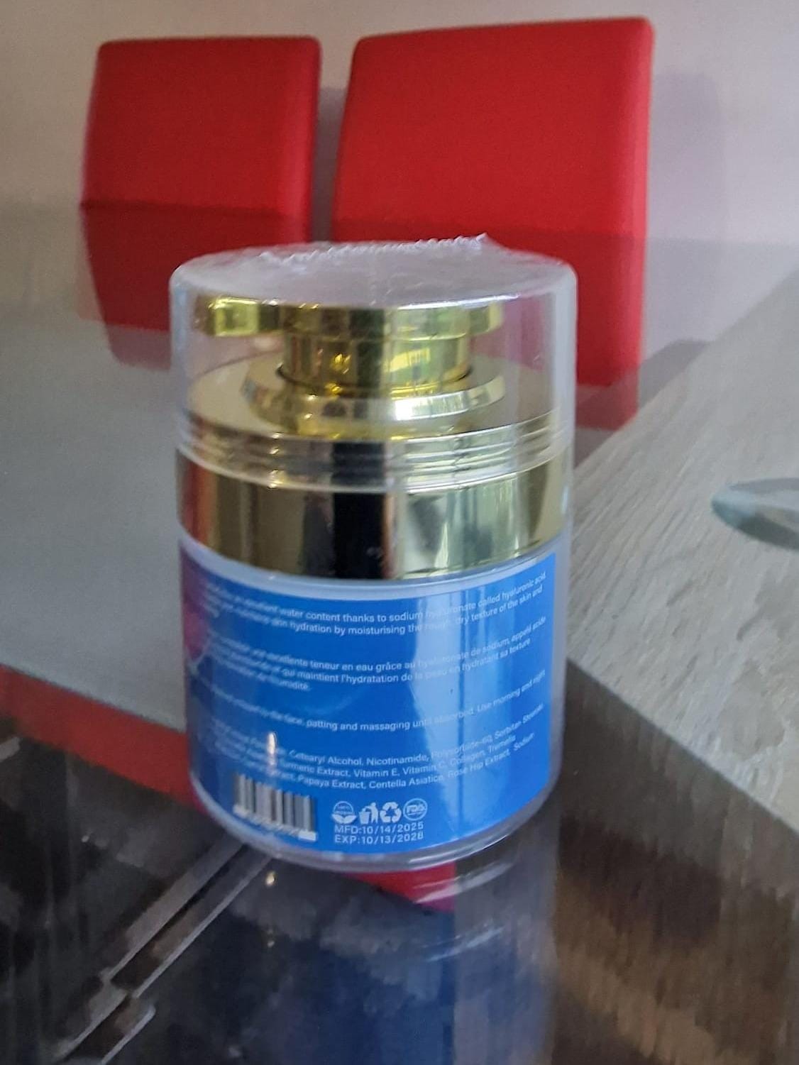 • Luxury gold-accented jar packaging